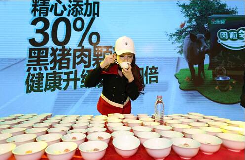 在現(xiàn)場,汪涵更是以無淀粉產(chǎn)品代言人的身份和現(xiàn)場經(jīng)銷商進(jìn)行了互動,《豬豬俠》人偶豬豬和菲菲也以金鑼哈啰伙伴系列產(chǎn)品代言人的身份進(jìn)行了萌翻眾人的表演,《畫江湖之不良人》主創(chuàng)團(tuán)隊(duì)則以cosplay的形象出現(xiàn)在舞臺上,帶來了一場如夢似幻的視覺盛宴。而YY當(dāng)紅大胃王女主播袁瑞彤PK三壯漢,10分鐘吃下70碗金鑼肉粒多拌面更是將現(xiàn)場氣氛推向高潮;外籍大廚阿爾伯特用德斯克制作三道色香味俱全的德式美食,也讓臺下經(jīng)銷商欲罷不能。這些豐富的代言形式,讓在場的經(jīng)銷商全部耳目一新,留下了深刻的品牌印象。也正是在代言人的推動下,短短兩個(gè)小時(shí)訂貨量便突破了1.15億。